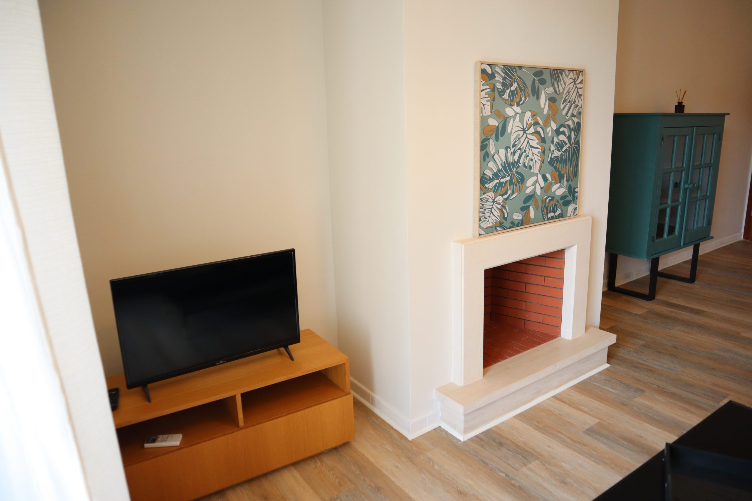 Sala de Estar: A sala de estar, espaçosa e luminosa, é o local ideal para relaxar, equipada com mobiliário confortável e uma televisão de ecrã plano para os seus momentos de descanso. As grandes portas de vidro dão acesso a uma varanda privada onde pode saborear o seu café da manhã ou um jantar ao ar livre.