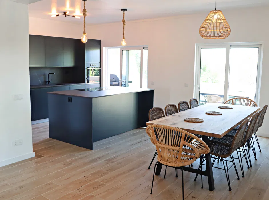 Mergulhe na sua piscina privada ou relaxe no terraço enquanto prepara um churrasco com a família ou amigos. A cozinha ampla e totalmente equipada será perfeita para acolher grandes convívios e criar memórias inesquecíveis.